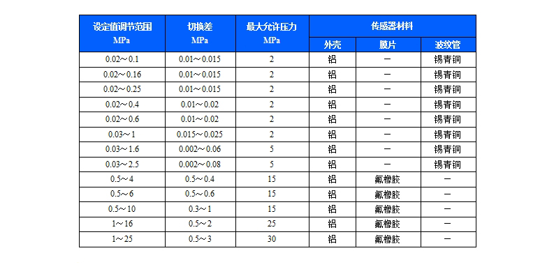 TLD-PC壓力控制器是采用膜片式傳感器,為雙刀雙擲壓力控制器,兩組微動(dòng)開關(guān)的切換值可分別設(shè)定;可用于空氣、氣體、水、蒸汽、制冷劑、油等液體介質(zhì)??刂破鞯脑O(shè)定值可調(diào),調(diào)節(jié)范圍0.01~25MPa。