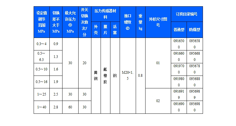 規(guī)格:切換差不可調(diào)(小切換差)