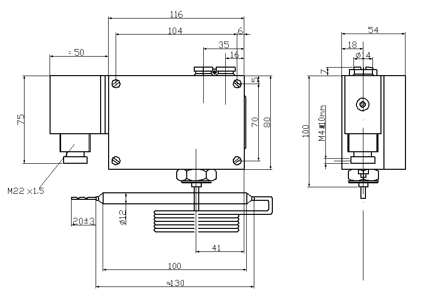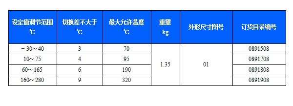 541/7TZ雙觸點溫度開關(guān)采用毛細管溫包式傳感器,可用于流動的中性氣體和液體介質(zhì)。如果介質(zhì)為腐蝕性,安裝時可選用不銹鋼溫包保護套套在銅質(zhì)溫包外,541/7TZ雙觸點溫度開關(guān)的設(shè)定值可調(diào),調(diào)節(jié)范圍-30~280℃。